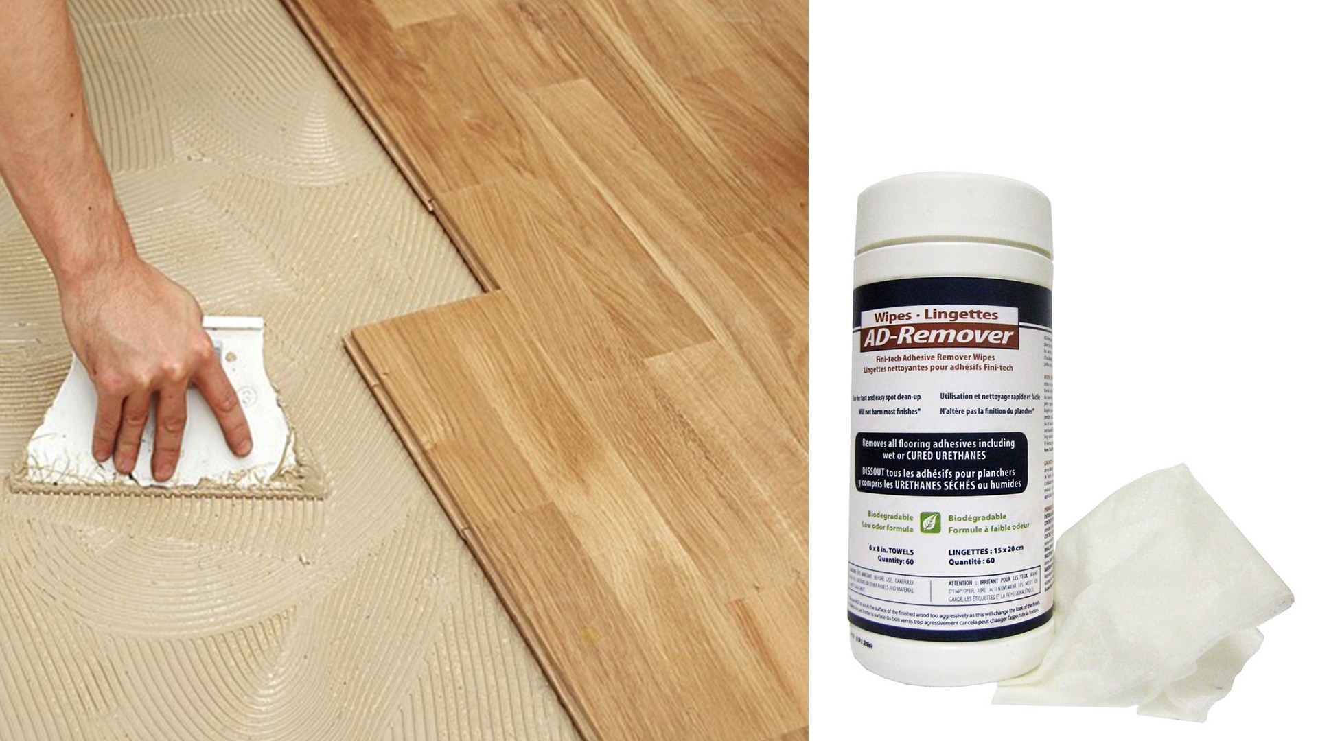 Vous avez un plancher de bois franc tout neuf, mais vous réalisez que les installateurs ont laissé des traces d’adhésifs partout suite aux travaux. Que faire? Certains vont suggérer des méthodes « maison » pour les enlever : gratter avec une vieille carte de crédit, frotter avec du WD-40 ou de l’huile végétale ou enfin appliquer de la glace sèche! Pourtant, il existe une solution toute simple et efficace : les lingettes nettoyantes pour adhésifs AD-Remover.
