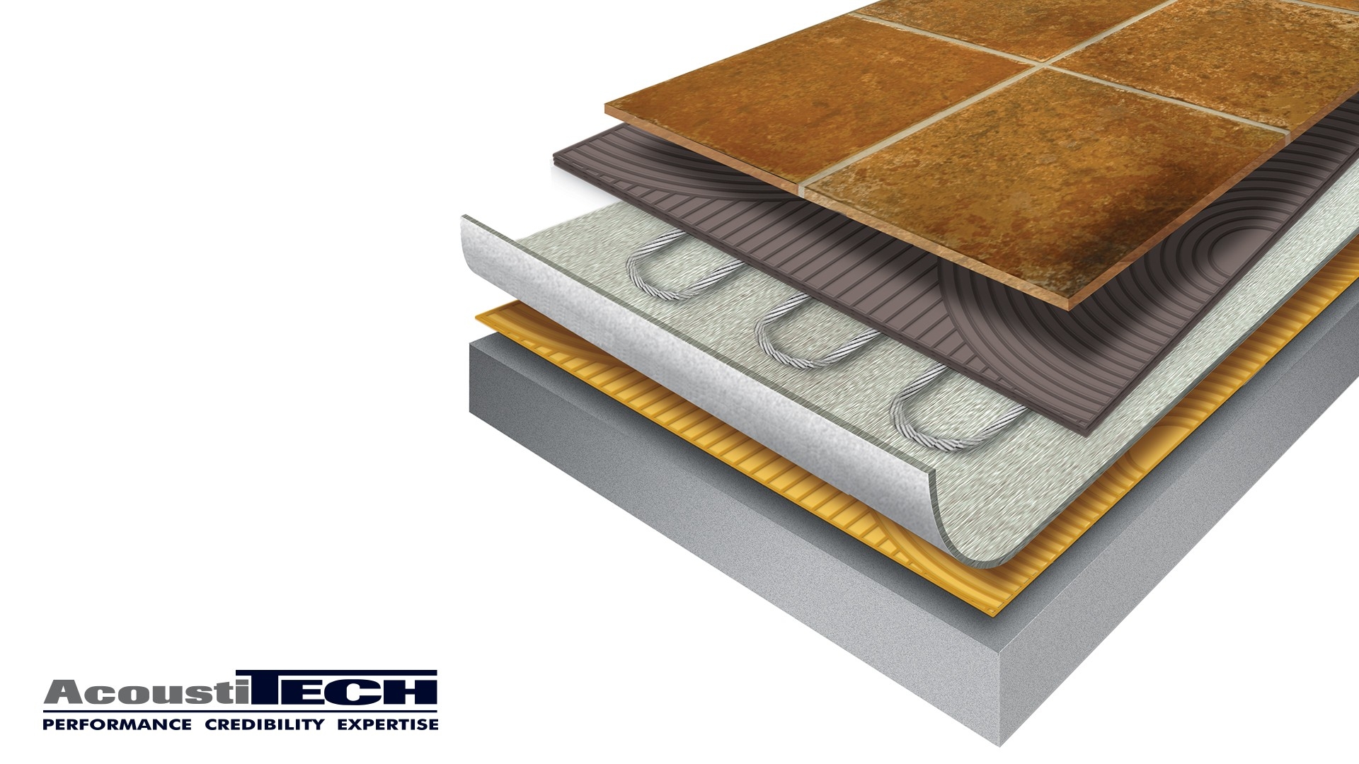 People who have installed a heating floor system in a room in their home or condo would no longer live without it. Often installed with ceramic tiles, this type of heating system is comfortable for the feet and offers an electricity saving. But what about the propagation of impact noise for those who live in the units below? The solution is to soundproof the heating floor system with an acoustic membrane or a floor underlayment specially designed to provide peace of mind to the occupants.